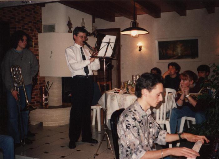 - Lors de mes 19 ans Une petite fête chez moi, je suis au clavier et le chef de mon harmonie à la clarinette.